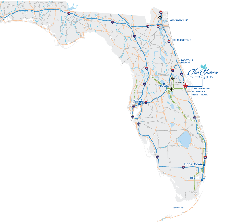 Welcome to the Shores at Tranquility, a stunning, one-of-a-kind gated, waterfront community on Florida’s Space Coast. Located directly across from the Kennedy Space center and the 140,000-acre Merritt Island Wildlife Preserve, this community has been thoughtfully designed for the ideal life of recreation, and relaxation.